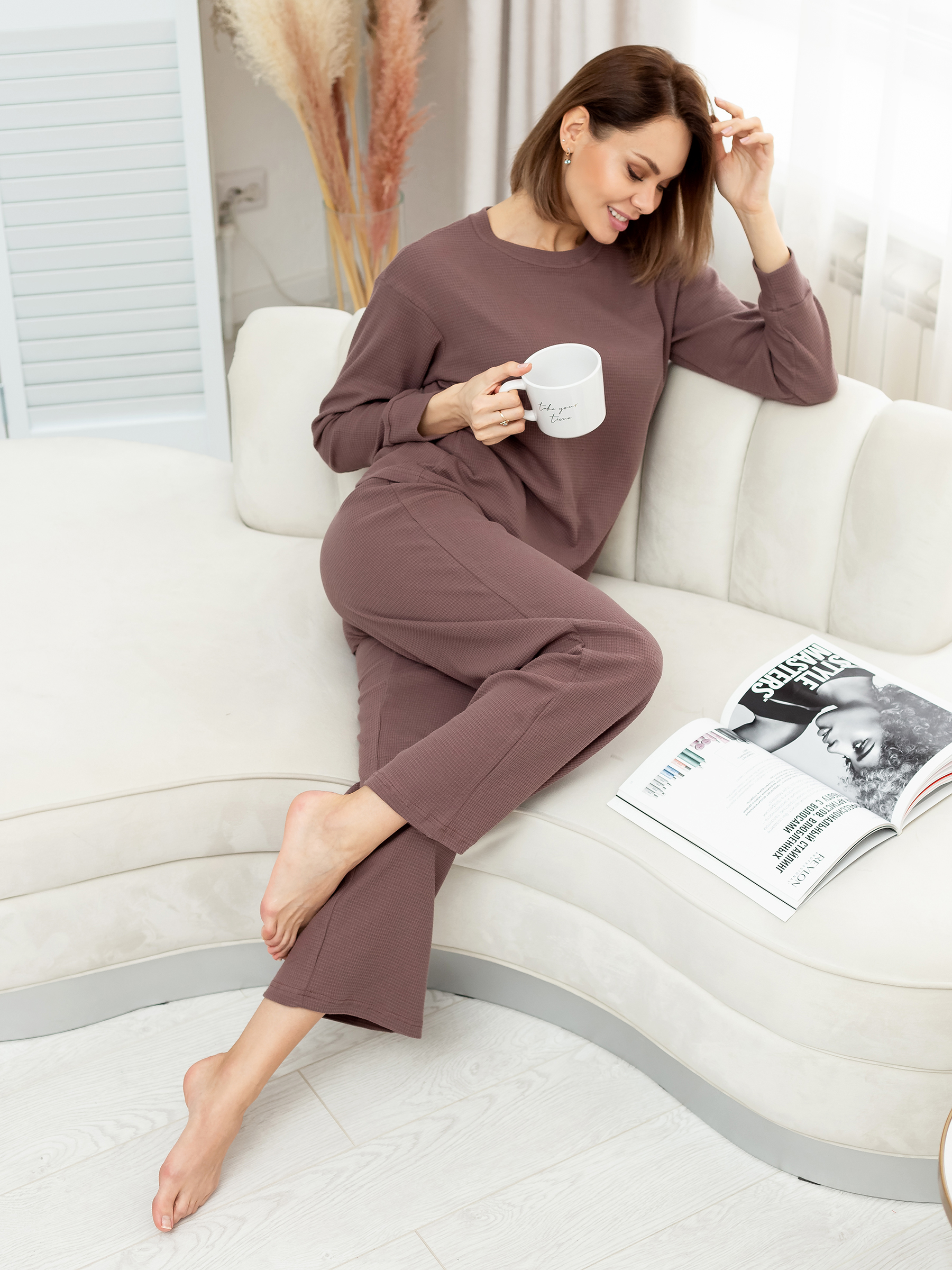 Штаны для дома хороши тем ,что к ним можно подобрать комплект с разными вариантами, с футболкой, с майкой, со свитшотом.