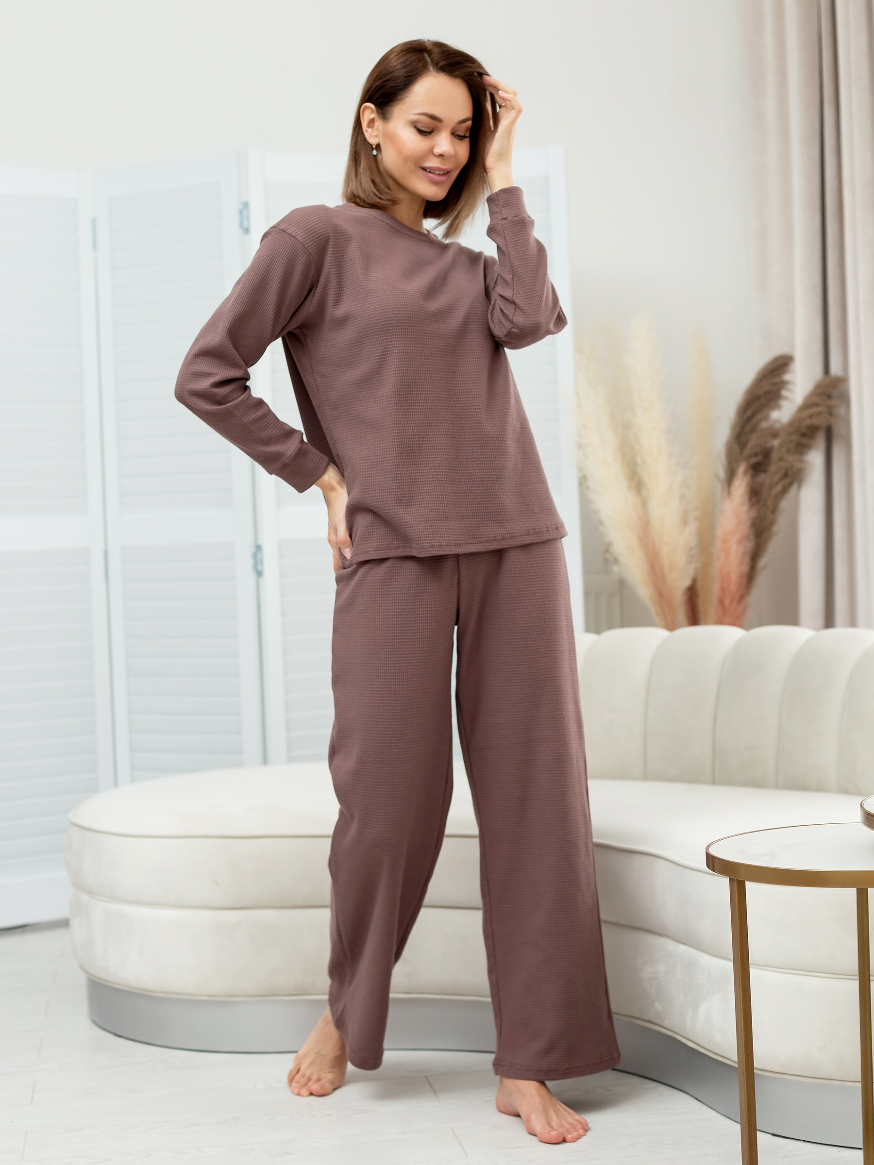 Брюки женские трикотажные коричневые