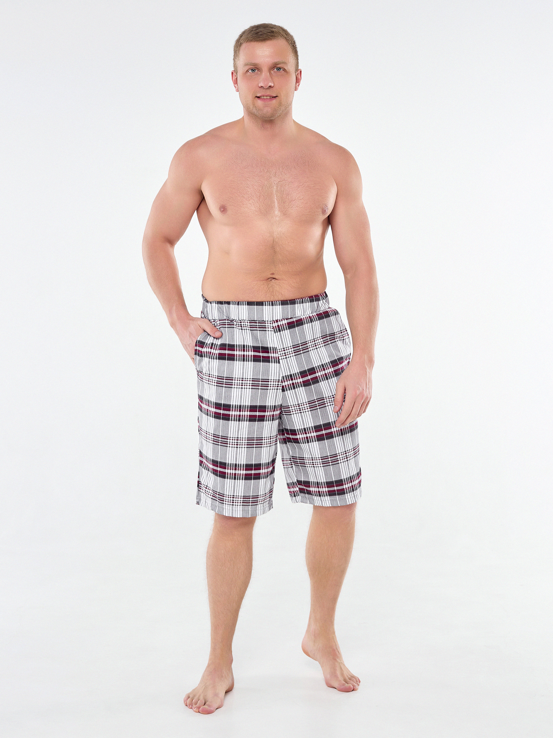 Мужские хлопковые домашние шорты с карманами по бокам.