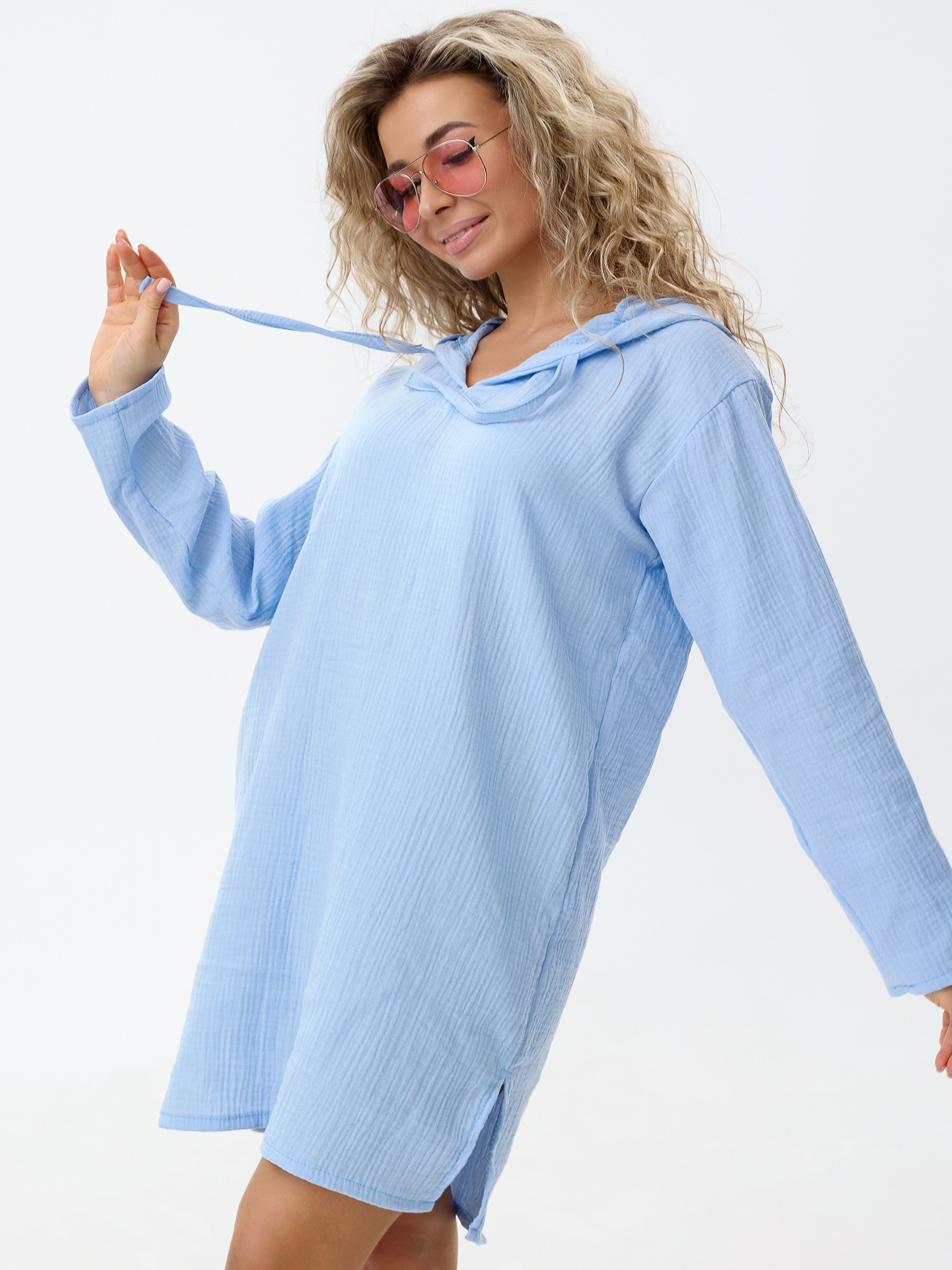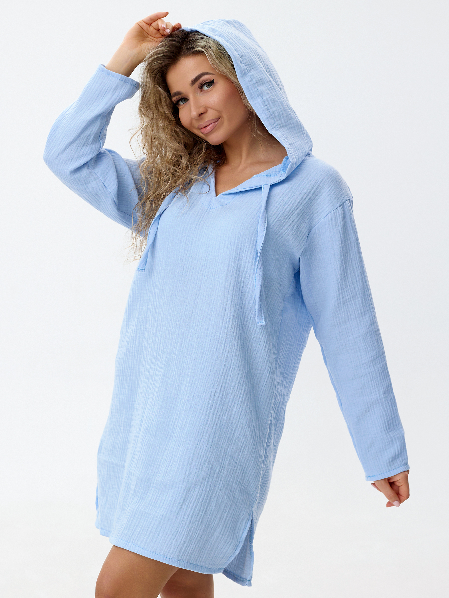 Летняя муслиновая туника с капюшоном для женщин.